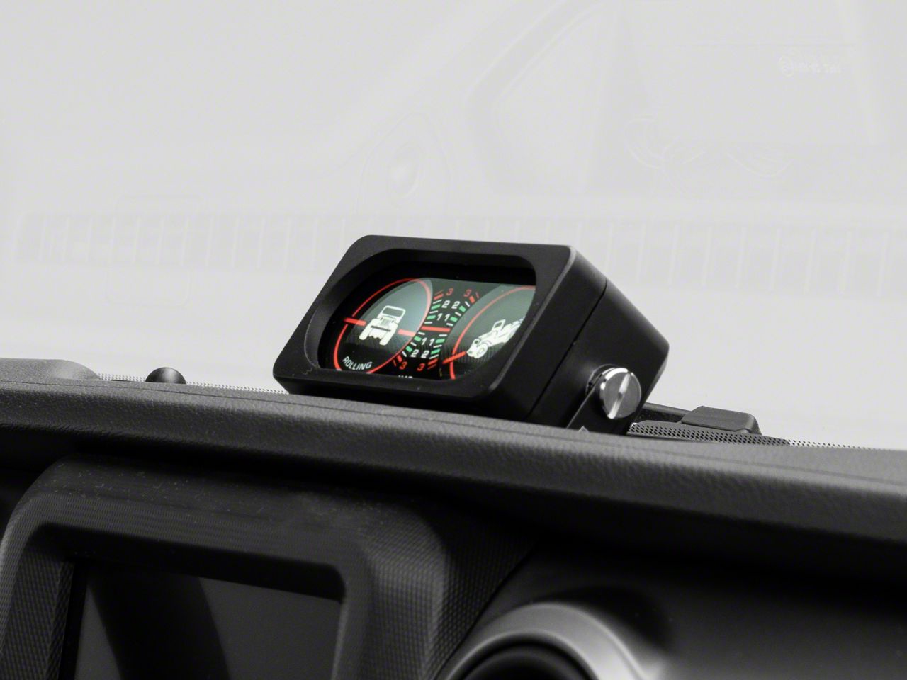 The clinometer with jeep graphic from rugged ridge features 2 gauges in one.